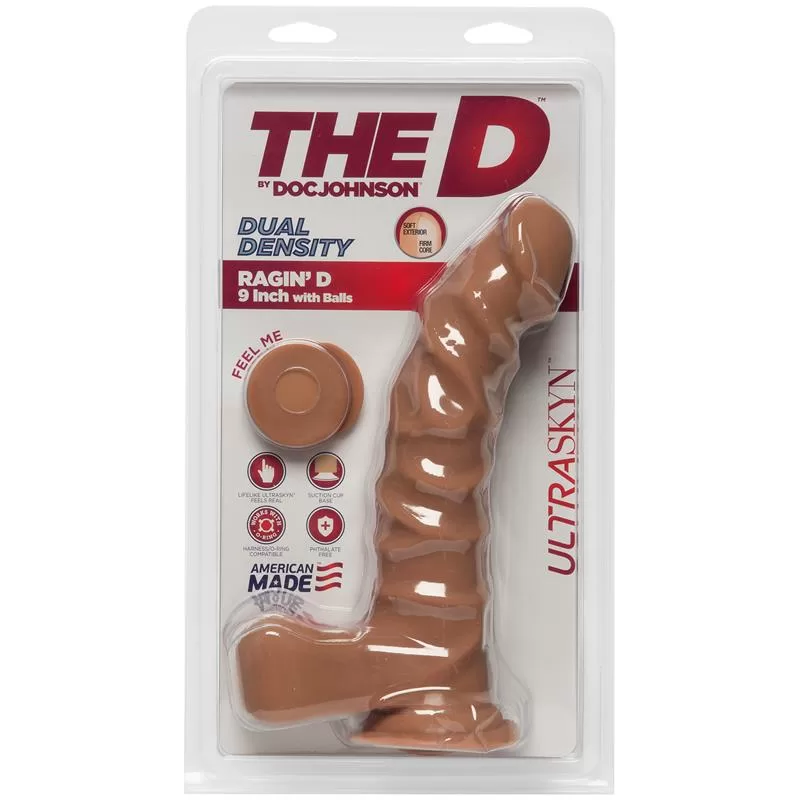 The Ragin D features 9? Ultraskyn, realistic, handcrafted. The glans is rounded, realistic, its body is realistic, textured and with a prominent curvature, ideal for stimulating your most sensitive points. At the base you will find a strong suction cup, ideal to put it on almost any flat surface and also makes it suitable for use with harnesses.
