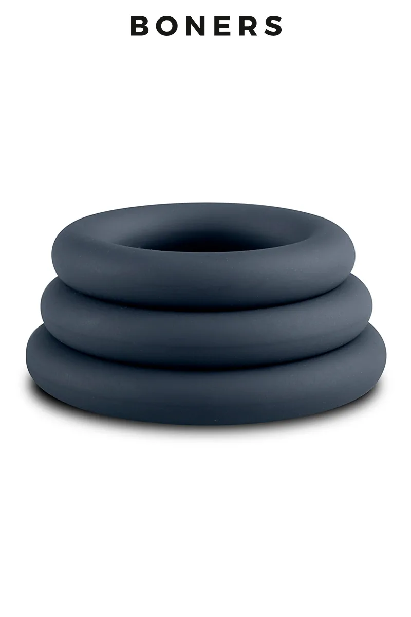 Maximisez votre plaisir et votre érection avec le kit de 3 anneaux de pénis Boners. Fabriqués en silicone doux et extensible, ces cockrings sont parfaits pour les débutants comme les experts.