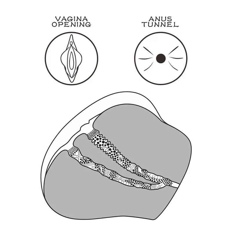 This masturbator is beautifully designed and molded after a model for a more authentic experience. The tunnel is designed with nubs that caress you as you slide deep inside her. The insertion of the anus is much tighter and has numerous curves. You will be able to lay her down or hold her close to you while you explore any of her two intricate insertions.
